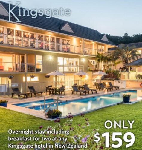 Bed & Breakfast – Kingsgate Hotel – Enjoy overnight accommodation including breakfast for two at any participating Kingsgate Hotel and Resort in New Zealand. Package Details: Overnight accommodation for two in a Standard Room at any Kingsgate Hotel and Resort in New Zealand. Breakfast for two. Participating Hotels are Kingsgate Dunedin and  Paihia. This is an “AwaytoGo” voucher.  Please allow up to 48 hours for delivery of this voucher and NOTE this ‘AwaytoGo’ voucher cannot be refunded or exchanged through the Gifts to Remember system. Please Refer to the ‘Key Information’ tab for all other AwaytoGo Terms & Conditions.