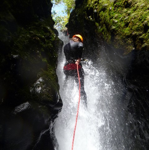 Canyoning – West Coast Auckland – 1 person – Half Day – Adventurous birthday or Christmas gift for men or women – Auckland New Zealand. The Piha Canyon is set in the picturesque hills behind Piha beach. In this steep sided volcanic rock valley, there are a series of wonderful waterfalls that cascade their way down the valley towards the ocean – providing a spectacular setting for your adventure. Experience the exhilaration of abseiling over the majestic Kitekite falls, as well as descending down a narrow slot canyon. It doesn’t stop there though, with a cave, jumps, and idyllic natural rock pools to swim in. Allowing you access to hidden pools and water sculptured gorges that are otherwise inaccessible. We are privileged to operate in this awesome landscape and pride ourselves in providing you with a personalised tour of this canyon. A no-rush, explore at your own pace adventure! And don’t worry the jumps and cave are optional… This mighty Piha waterfall was historically used by the pioneers, who worked the canyon 100 years ago, harvesting the mighty Kauri logs and flushing them down from the hills via dam releases – Some of the old logs still remain embedded in the canyon today. Due to the Piha canyon having great accessibility (a 35 minutes walk in and a five minute downhill walk out from the end of the canyon), we have time at the end of the trip for a short visit to Piha’s famous Lion Rock and its beautiful black sand surf beach. If you require transport to Piha ex Auckland central this can be arranged when booking at an extra cost of $30.00. No previous experience is required, with canyoning you can decide on the level of adventure you want to experience. The New Zealand qualified instructors are certified for both abseiling and water activities – they make no compromise of safety.