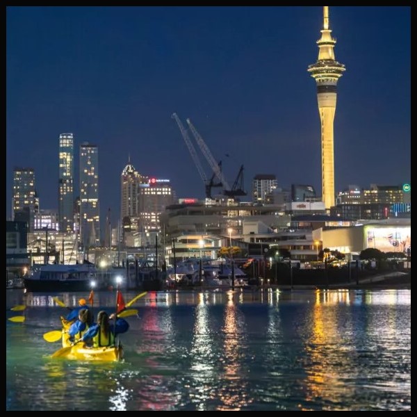 City Lights Night Kayak Tour –  2 people ….Discover the magic of Auckland after dark on our City Lights Night Kayak Tour…….. Begin your journey at St Mary’s Bay, just a short walk from Viaduct Harbour, Wynyard Quarter, and Central Auckland. Paddle alongside Westhaven Marina with the iconic Sky Tower glowing against the setting sun. This is the perfect way to kick off a date night or an evening adventure in the city. Enjoy the city lights from the best seat in the house—your kayak. As Auckland’s first-ever inner-city night kayak tour, it offers unforgettable perspectives of the city, combining the serenity of nighttime paddling with the vibrant energy of Auckland’s illuminated landmarks. Why You’ll Love The City Lights Night Kayak Tour: This tour is perfect for those looking to experience Auckland in a completely new way. The combination of serene nighttime paddling, vibrant city lights, and our knowledgeable guides make this an adventure you won’t soon forget. Whether you’re a local or a visitor, the City Lights Night Kayak Tour offers a unique perspective of Auckland that is truly unforgettable. Allow 2 hours for this adventure, 1.5hrs of paddle