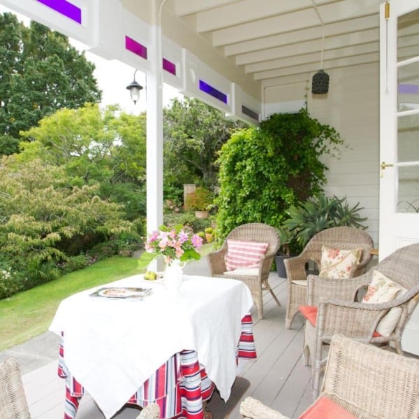 One night Stay Cobden Garden B and B – Garden Room Spoil someone to a stay in an elegant, historical villa where there is a warm welcome, generous hospitality and quality accommodation. Located high on Bluff Hill, Napier, Cobden Garden Bed and Breakfast, is traditionally decorated but, just like a hotel, there are modern facilities to provide for your every comfort. The Garden Room is a spacious room with a super-king bed that can be split into twin beds. Made up with cotton sheets and pillow cases and a choice of cotton blanket, feather blanket or fluffy duvet, depending on the season, the bed is perfect for a restful night's sleep. Comfortable casual chairs, a small table and antique wardrobe complete the furnishings: Relax with a magazine, check emails, enjoy a cup of tea or coffee from the built in refreshment area: Enjoy catching up on a movie or the news on the television with DVD player or listen to a CD. The ensuite in this room has an old fashioned coffin bath, perfect for soaking – with a shower over and a basin and wc. Locally produced toiletries made from lavender grown in the Hawke's Bay and fluffy towels hung on heated towel rails complete this relaxing space. A luxurious, restful room with morning sun and a cool retreat on a hot afternoon. The stay also includes: A welcome afternoon tea or coffee with home baking: Pre-dinner local wine with homemade hors d’oeuvres: A sumptuous breakfast including a hot dish chosen from a menu and cooked just for you. Enjoy learning the history, in the tranquil garden and hear the song of the many birds who make this established garden their home. A perfect gift for any couple or someone who needs a bit of R & R.
