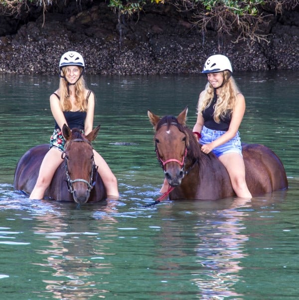 Horse Riding Ride the Waves – Northland 1 Person – 2 Hrs. A most popular and a unique experience – come and join us for our ride the waves experience. This two hour horseback ride will depart from our base along side the Waitangi Endowment Forest. The first part of the ride will take us on a scenic tour around Waitangi where you will learn about the local wildlife and culture from our experienced guides before looping back down towards Wairoa bay where we will take the horses for a swim. For more experienced riders we’ll head into the woodland for an hour at a faster pace and the chance to blow away a few cobwebs – a breathtaking experience that is not to be missed. Wairoa bay is our own secret and quiet access to the bay. Our guides will remove the horses saddles and help you mount the horses bareback where we will assist you in taking the horses into the water for a splash and possibly swim. A truly unique and rare experience that is certainly not be missed. Important: This ride is only available in the summer months (Nov-Apr) and is subject to sea and weather conditions. Restrictions: The minimum age for the 2-hour ride is 10 years old. – Max weight is 95KG