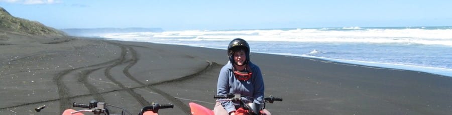 Quadbike Coastal Safari – Auckland (2 hrs) – 1 person – Quad biking is fun and even more impressive on the West Coast. This is a great gift experience for men and women of all ages and abilities. No experience needed. . This tour covers between 25 and 35kms of forest tracks, which gets onto the beautiful and sometimes wild Muriwai Surf Beach for a short blast before heading back into the forest tracks. Tailored to suit the individuals riding capabilities. Full instructions are given and the tour is fully guided. Age limit is 14 and above – doublers (including children between the ages of 5 and 13) pay half price with a full paying adult. The Safari starts at 10 am or 1 pm. You will need to be there at least 15 minutes early for the briefing. Times to be confirmed when making your booking Just think of the excitement, fresh air & scenary!! You will need a motorcycle/drivers licence for beach safaris.