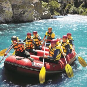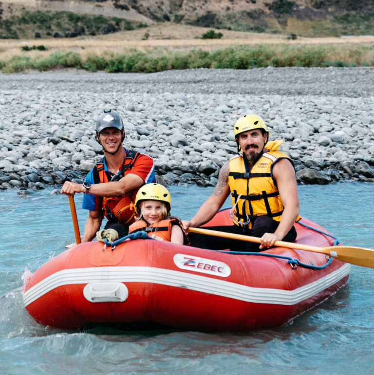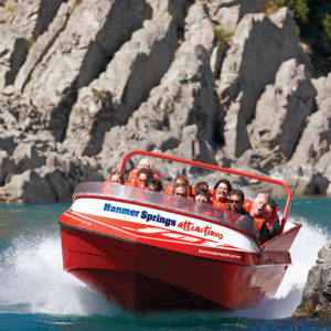 A more sedate rafting experience that is suitable for all ages. Marvel at the twisted rock, water holes, pink marble and faultline. This experience also includes a rock jumping opportunity and an exhilarating jetboat ride. Relax on this Grade 2 adventure and listen to your experienced and qualified guide’s commentary about the Waiau River and the area’sunique history. Hanmer Springs provides an idyllic backdrop to an unforgettable rafting experience. Set amongst stunning mountains and marble formations, it’s easy to see why this is a favourite adventure for many. • Minimum numbers of 2 pax. • Minimum age 6 years (children must fit safety equipment to participate). • Grade 2 river. • Departure times 10am & 2pm. • Trip takes 2 hours & includes a return journey by jet boat. • Clients to bring swimwear, towel & sunscreen. • We provide wetsuit, booties, helmet and life jacket.
