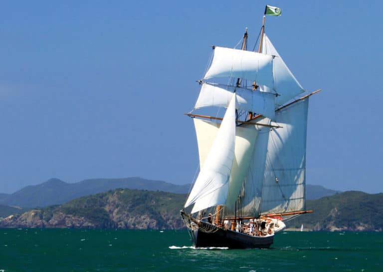 One Day Sailing Adventure on the Tucker Thompson – 1 Adult –  Tallship sailing experience in the Bay of Islands New Zealand – gift for those who appreciate a touch of history. The R.Tucker Thompson is spacious, with plenty of room on board to relax, read a book and soak up the sun (but don't forget your sunblock!). If you fancy something more energetic, then the crew will show you how to set the sails and you help sail the ship. If you really fancy adventure, then ride the bowsprit or climb the rigging, then swing off the rope for a lunch time swim. At lunchtime, we'll find a sheltered cove and you can head ashore, have a swim or stay on board and have a drink. When you get back, we'll serve you a delicious BBQ lunch. We have a licensed bar so you can enjoy a drink with your lunch before setting off for an afternoon sail. (Not included in this gift). If you are musically inclined, feel free to strike a few chords on the ship's guitar…. we've even got a chess board if you fancy a game. Our friendly crew will make you feel at home and share tall tales with you about past voyages. Then kick back, and experience the awesome feeling as the wind fills the sails and we sail home. Operates from 14 December through to 1st April each year.