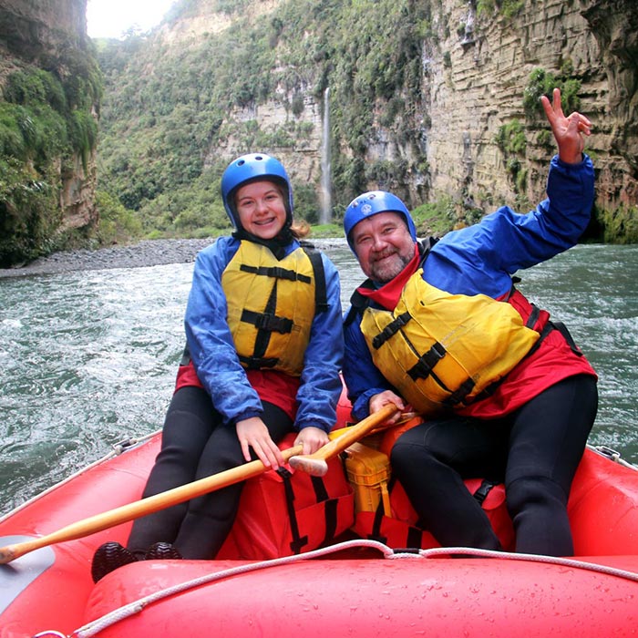 Scenic Rafting Adventure – Rangitikei – Taihape -1 Child. (Aged 12 and under) With over 30 Grade 2 (easy) rapids, amazing scenery and a riverside lunch, the 13 km section of the Rangitikei River downstream from River Valley Lodge is perfect for all ages. Raft down the Rangitikei river and take in the stunning scenery – immense cliffs, canyons and native bush. There will be plenty of time along the way to stop for a swim. For those looking for more action we can also take inflatable kayaks as well as rafts. This is a full day rafting trip, all equipment and lunch is included. River Valley has been rafting since 1982 and is one of the North Island’s most experienced rafting companies. All trips include wetsuits, helmets, life jackets and transport from the River Valley lodge to the start point. Rafters just need to bring a swimsuit, towel, and good attitude. River Valley is located in a remote but beautiful setting, 30km East of Taihape, off state Highway1. For this trip to run we need a minimum of 2 adults, or 1 adult and 2 children – (call us if travelling in a smaller group so we can add you in with another group) The season for this experience runs from 1st October to the 30th April