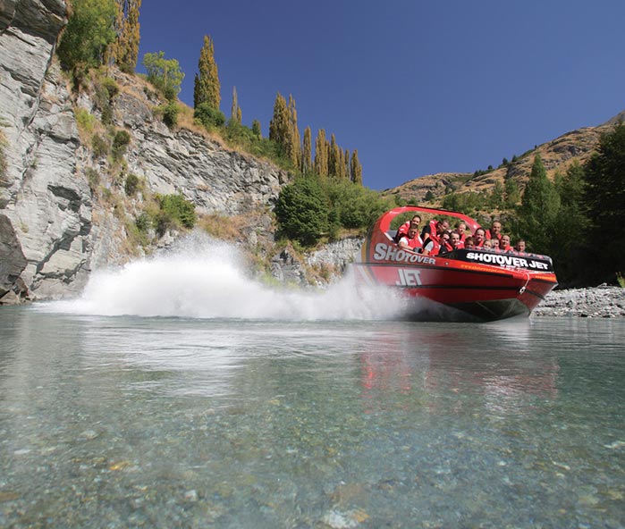 The World's Most Exciting Jet Boat Ride – Thrilling gift experience for a child – Queenstown Nothing you have experienced will have you prepared for the excitement and thrill of a Shotover Jet ride. It's an adrenaline rush you'll never forget! From the moment the accelerator hits the floor your adrenaline hits the roof as you speed along the famous Shotover River and deep into the Shotover River Canyons. As the towering, rocky Canyon walls tower over you, your driver skilfully whips the boat past rocky outcrops, and skims around crags and boulders. Rock faces blur in your peripheral vision, the opaque water sprays into myriads of white crystals with every turn, you grip the safety rail for comfort and reassurance and let out a whoop of excitement as the driver spins the boat around in its own boat length and you experience the 'trademark' Shotover Jet 360 Degree Spin! You’ll also stop briefly along the Shotover River while your driver highlights historical landmarks and points of interest. No visit to Queenstown is complete without ‘Catching the Canyons’ with Shotover Jet, ‘the world’s most exciting jet boat ride’ and the only company permitted to operate in the spectacular Shotover River Canyons.
