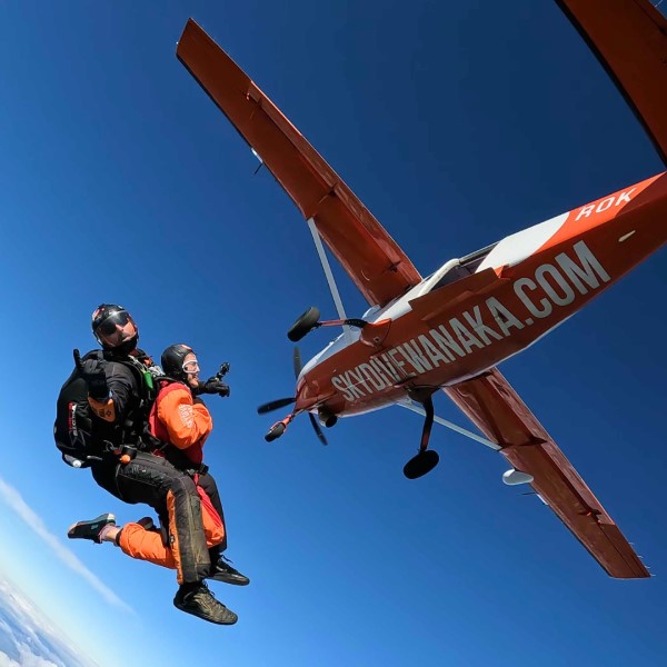Skydive Tandem – 15,000ft Wanaka with 60 second freefall. It’s not every day that you strap yourself to a beautiful stranger and leap from a perfectly good aircraft! Wanaka offers some of New Zealand’s most beautiful scenery and picturesque landscapes , so why not strap yourself to a beautiful stranger and leap from a perfectly good aircraft with Skydive Wanaka. Experience the thrill of freefall from up to 15,000ft and reach speeds of 200kphs….All while enjoying unrivalled and uninterrupted views of Wanaka’s world-renowned lakes and mountains! This experience is for a 15,000ft jump. View up to six lakes and the rugged Southern Alps beyond to Mount Cook….Experience New Zealand’s most spectacular skydive! Capture your impressive freefall smile on camera and break the news to your mother in style!