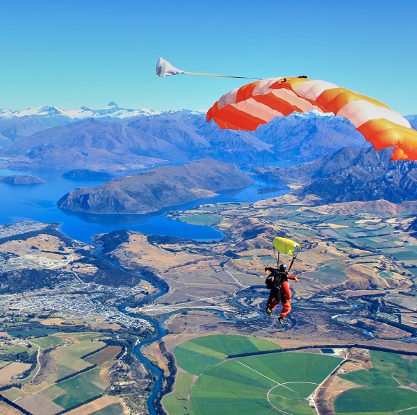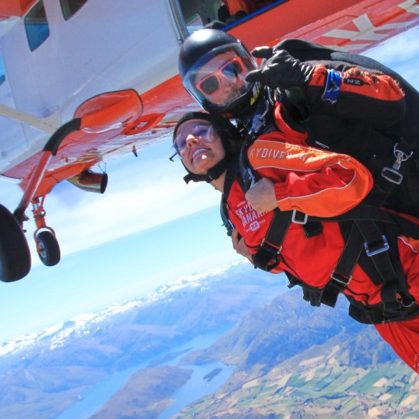 Tandem Skydive – 12,000ft Wanaka with 45 second freefall. It’s not every day that you strap yourself to a beautiful stranger and leap from a perfectly good aircraft! Wanaka offers some of New Zealand’s most beautiful scenery and picturesque landscapes , so why not strap yourself to a beautiful stranger and leap from a perfectly good aircraft with Skydive Wanaka. Experience the thrill of freefall from up to 15,000ft and reach speeds of 200kphs….All while enjoying unrivalled and uninterrupted views of Wanaka’s world-renowned lakes and mountains! This experience is for a 12,000ft jump. View up to six lakes and the rugged Southern Alps beyond to Mount Cook….Experience New Zealand’s most spectacular skydive! Capture your impressive freefall smile on camera and break the news to your mother in style!