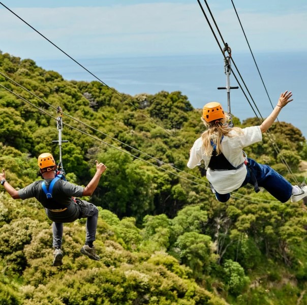 Zipline and Native Forest Trail Kaikoura – Family (2 adults & 2 children, or 1 adult & 3 children) Experience Kaikoura as you have never experienced it before!! Your 3.5-hour adventure and eco-tourism experience starts in central Kaikoura. After meeting the crew at homebase, they will prep you for your 15-minute scenic shuttle ride south in airconditioned comfort to the “gear up” and staging location….From there, you’ll be transferred to a custom-built Unimog 4X4 that will carry you through the intertwined freshwater streams of the Kahutara river, then onto Rakanui Station…. Through all stages of your experience you’ll be accompanied by two of our expert, local guides, who will describe the history of the region, share stories of the local people and explain how your participation in the Zipline experience is helping to restore sections of Rakanui Station’s farmland back to native forest. Crossing the Kahutara river in our 4X4 vehicle, taking in the sweeping views of South Bay – home to Kaikoura’s whale watching fleet and the Kaikoura peninsula, where Maui placed his heel to steady himself as he hauled North Island from the ocean – enjoy commentary from our team of expert, local guides, before completing 5 epic ziplines, ranging from 200 – 620m in length, followed by a walk back to base through our native tree nursey and regenerating forest. Our twin cables make this a unique experience as, unlike other zipline tours, you can fly side-by-side with a friend or family member down lines totalling more than 2.2km in length. You will find we've turned a usually solo experience in to a highly social one! Join us and experience fun, excitement, laughter and adventure all just a 2.5 hour drive from Christchurch, or 2 hour drive from Picton. Leave with lifelong memories and the knowledge that, by visiting you've contributed to the lasting conservation of an important environmental legacy. We know you won’t be disappointed. Mininum weight: 30kg (66lbs) but not more than 125kg (275lbs). – There is no age limit but participants aged 15 and under must be accompanied by someone aged 16 or over. Anyone aged 17 or under, must have their waiver signed by a guardian aged 18 or over.